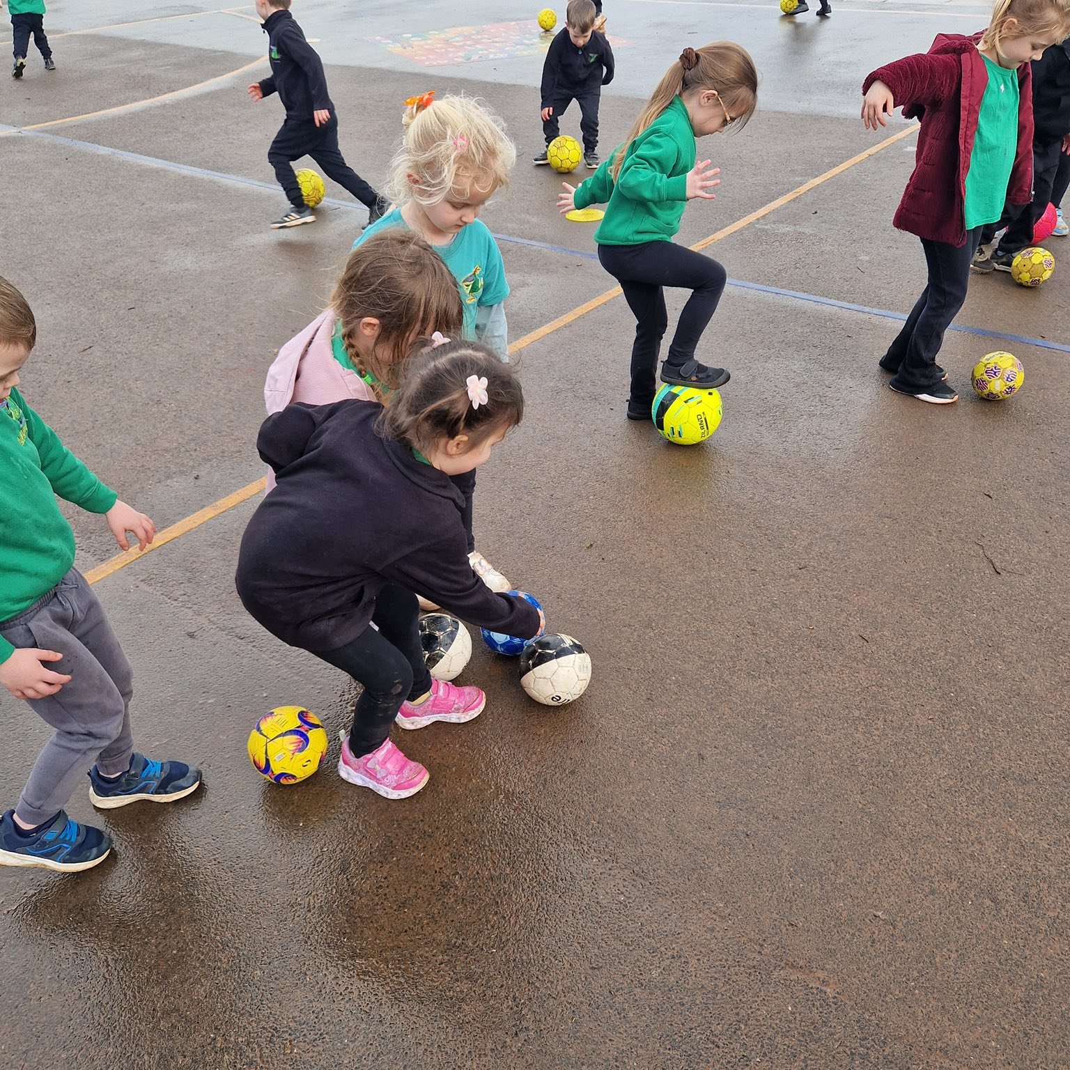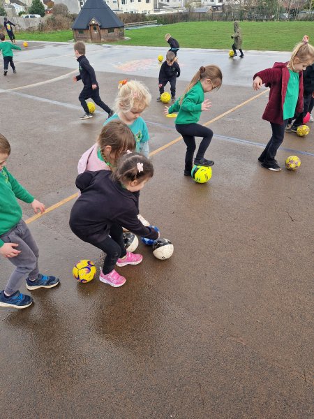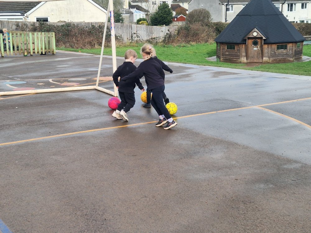 In PE, we have been working with Mr Phillips on football skills. We have learnt how to control the ball through dribbling and have had lots of fun playing games and scoring goals-of course!