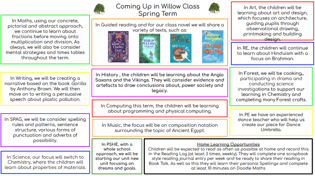 We’ve had a wonderful start to the term in Willow Class and the children have returned with great enthusiasm for their learning. In Mathematics, we’ve been exploring Roman numerals, and in Guided Reading, the children have enjoyed DEAR time (Drop Everything And Read), where they’ve been sharing their chosen books with the adults in Willow Class. In English, we’ve started reading our new class text, Cosmic by Frank Cottrell-Boyce, which we’ll be focusing on over the coming weeks. In PSHE, we’ve begun thinking about our academic and personal goals for the year ahead. Meanwhile, in PE, the children have been working hard to develop their football skills. It’s been a fantastic beginning and we’re looking forward to a term full of learning and growth!