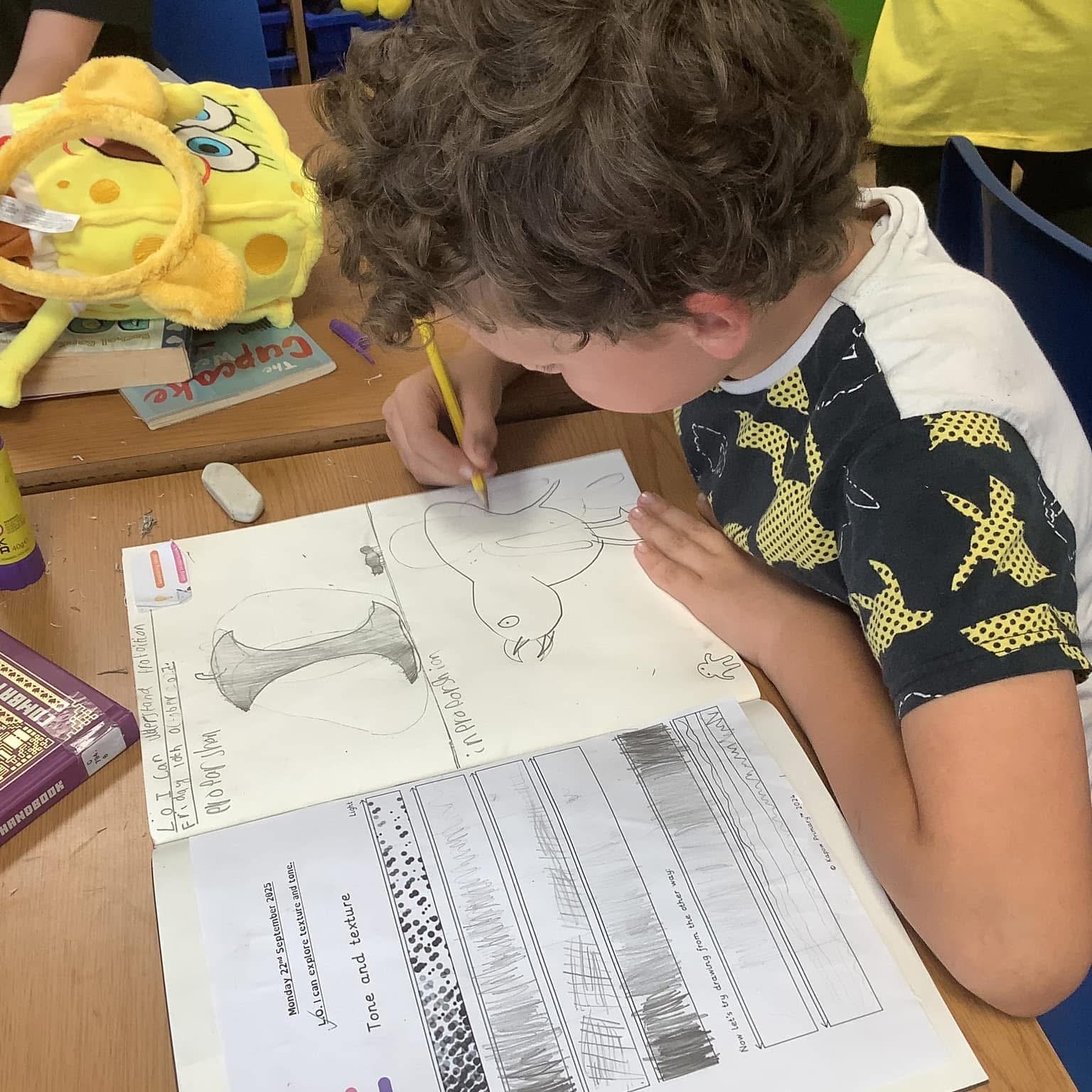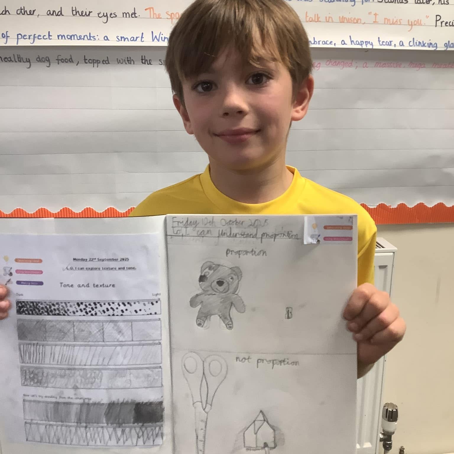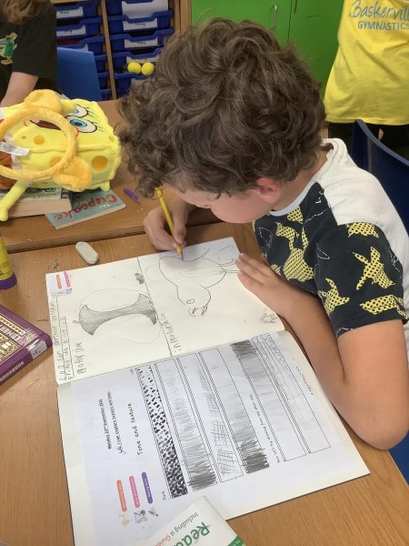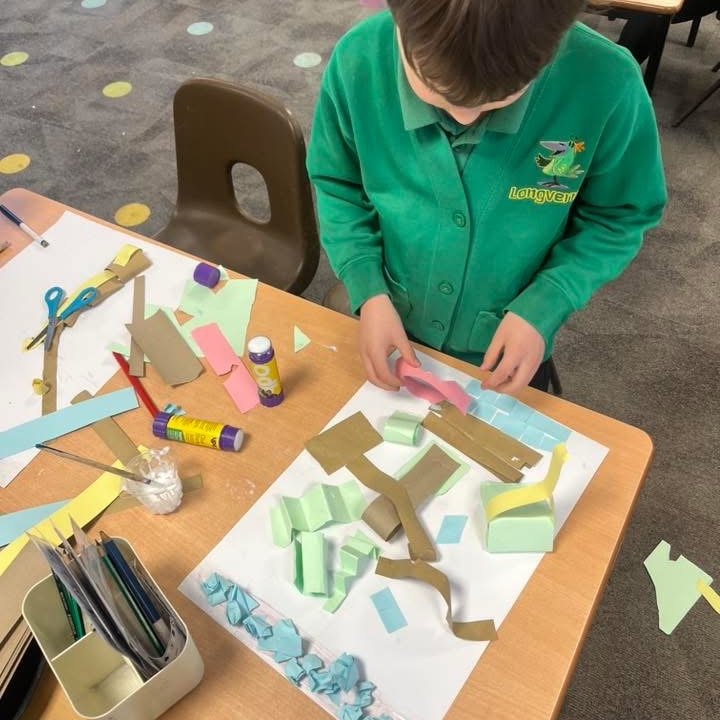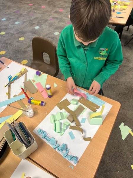Using a structured proforma, children at Longvernal Primary School learn creatively through a mix of techniques and processes. Children learn and experiment through the art curriculum which enables classes to try: drawing, painting, collage and textiles, printing and sculpture. The curriculum links with the Longvernal values to promote teamwork, originality, excellence, respect, and self-belief.